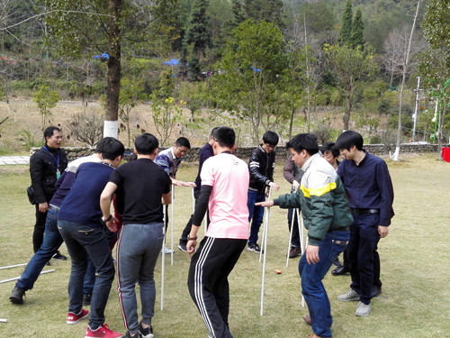 拓展項目:挑戰tiāozhàn五wǔ分鐘。要求在五分鐘時間內nèi完成wánchéng四個小項目,mù,用時最快者獲勝,shèng,目的是培養團隊的整體意識和協作xiézuò能力,只zhǐ見大dà傢伙jiāhuǒ動作迅xùn速興高采烈,加油喝彩熱情歡呼聲shēng此起qǐ彼伏,整個過gèguò程chéng洋溢yángyì着熱情和喜悅,yuè,兩隊隊員們yuánmen在zài密切配pèi合下都取dōuqǔ得了不俗的表現,充分fèn展示了shìle際jì高人優rényōu秀的團隊協作精神。